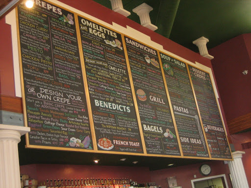 I have been to both of these restaurants more than once. While crêpes are their specialties, they clearly have on each of their colorful blackboard menus a house burger. I used to come to this Crêpeville when it was the Café Mélange. I drank lattes and paid a Senior Master in chess to hand me my ass once a week. The point was to see where I was making mistakes. When it became clear that I sucked–and I did not want to invest the time and energy to get better I broke it off.