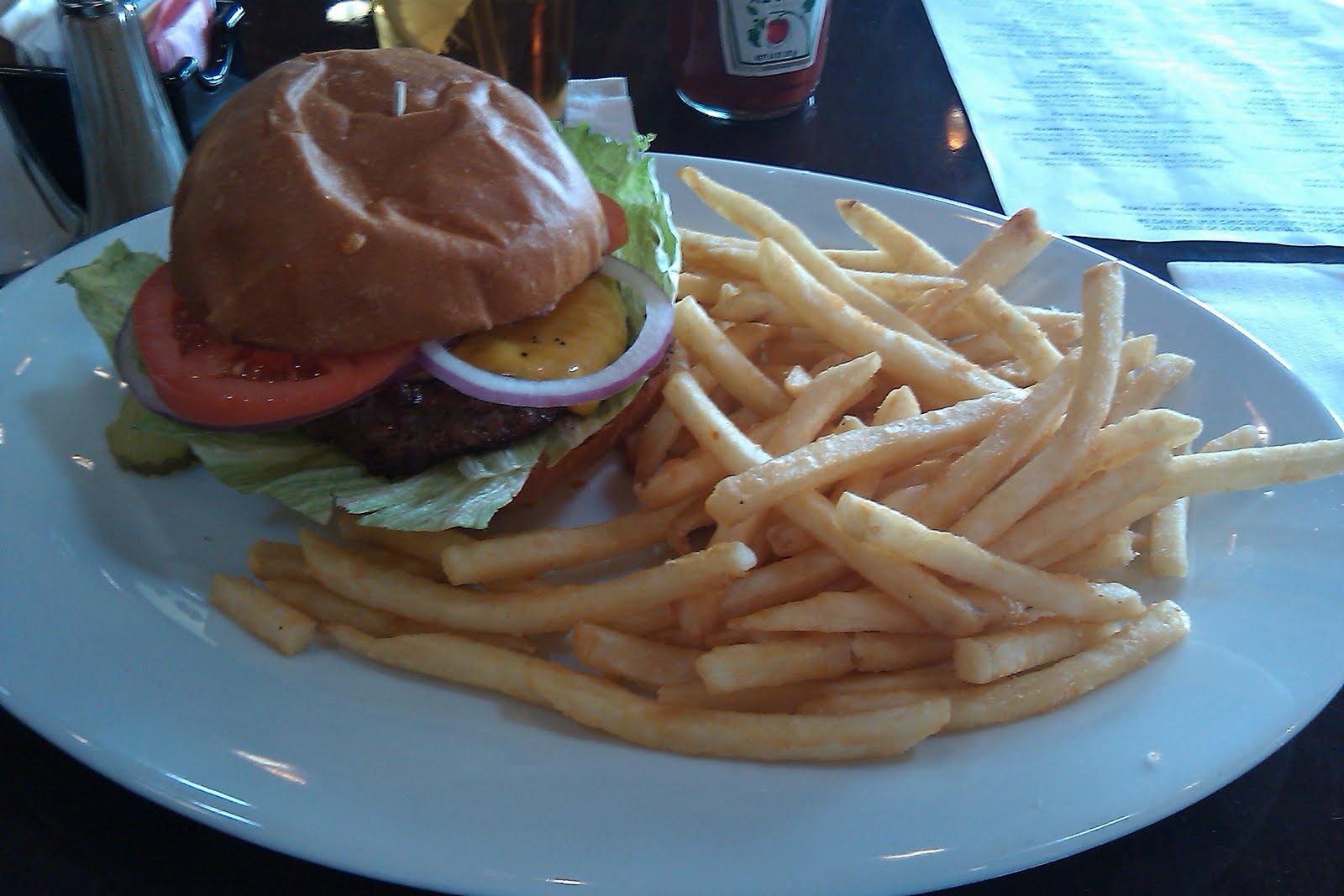 Anyway, here I was with a raw burger. This would have been an perfect time for me to respond in the negative for once when the server came asking if everything is okay. “No, everything is not okay! Look at my burger. It is pink-going-on-red; and check out my plate of blood!” This was truly a argument for meek people like me to step up and demand to have the dish returned, but I am meeker than most. With the steer still kicking in my mouth, I just smiled and grunted, “Uh-huh.”