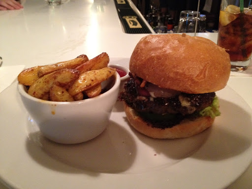 When the chef gingerly placed the dish in front of me, announcing “Juicy Lucy” as if he was saying “foie gras, Monsieur,” I noticed what had to be the perfect model of a burger posing as a still life. The burger was fully assembled, not open-faced waiting for a picky eater to pluck out the onions or dump a bottle of ketchup on it. The Lola Rosa lettuce was trimmed so its edges did not fall over the patty and lower half of the bun, as lettuce does with most burgers. Someone put this burger together thinking that it was not just a burger but also a work of art. There, I said it.