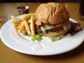 The Capitol Burger is a 1/3 lb. of ground, tenderized filet mignon and sirloin. The patty is so tender that it melts in your mouth and almost makes up for that fact that there is so little fat in it—an element that makes burgers so great. If the patty were the only thing that mattered in a burger, Chops’ entry would be a very good burger despite the meat’s leanness. It is surprising how unimaginative the rest of the burger is. A very good French roll, good grilled red onions, but with this patty, I would have kept the onion crisp. The lettuce and tomato are fresh, but nothing exotic, just like the thousand island dressing on the roll. I ordered pepper jack, but wondered whether the bleu cheese would have been a wiser choice. Too much bleu cheese can overpower a burger, or any other dish, but it might be the best option in this case.