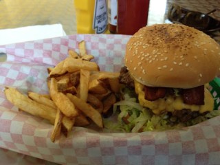 | The very good and very filling Stevie Boy Cheeseburger. |