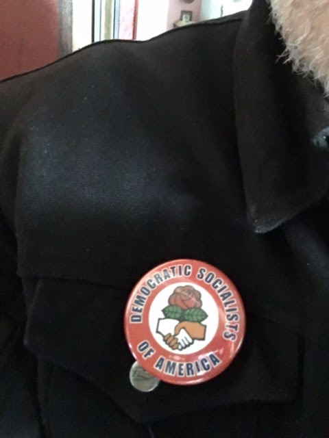 I wear my DSA button on my motorcycle jacket with pride. I would love to say it is a successful ice breaker, but I rarely get any comments from it. So, this old dissident rides on–alone.