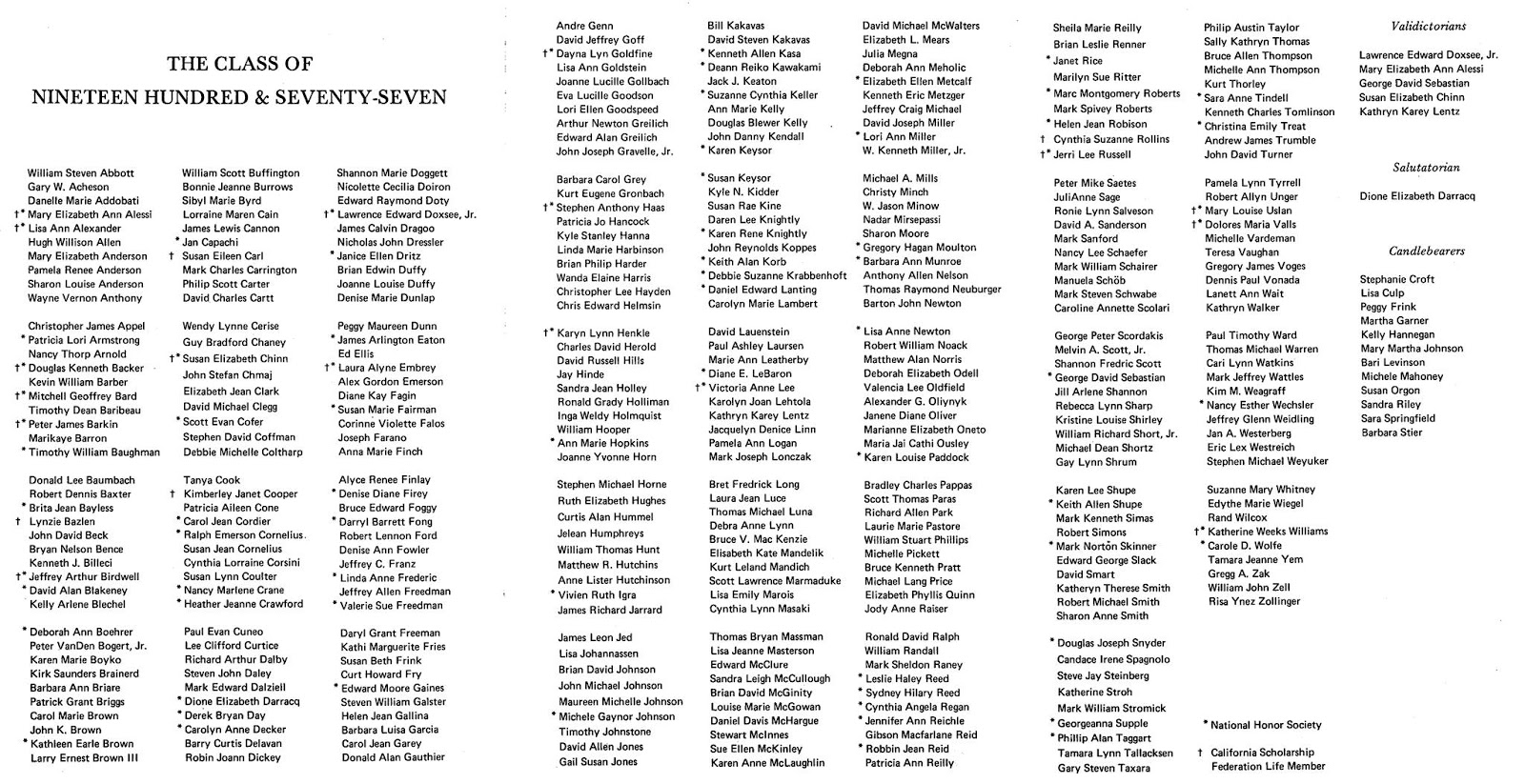 | Rio Americano Class of ’77. (Are those peppers next to some of the names, like on an ethic food menu?) |