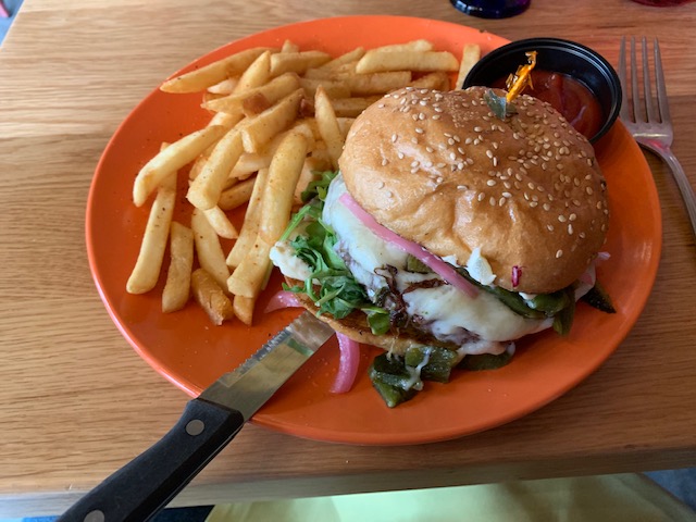The Mexico City Burger (CDMX) is an eight ounce beef patty, topped with melted cheese, mild poblano chile peppers, pickled onions, arugula, Cosecha’s special sauces on a large sesame seed bun. The poblano and the pickled onions give the Mexico City Burger a one-of-a-kind taste. I can’t say it ranks with any of the burgers I listed at the top of this post, but it is also about four dollars cheaper and a very different experience. The melted (or Fundido) cheese also gives the burger a festive taste–like nachos on a burger. This is not the kind of dish you want to order on a first date–it is messy with each bite the molten cheese pulls apart so that you often have to use your other hand to manage the stringy cheese. As for the arugula, well that’s just the chef’s damn good taste! Oh yeah and the waitress and Google helped me with the trailing parenthetical acronym: CDMX stands for Ciudad de Mexico or Mexico City. Thanks, waitress!
