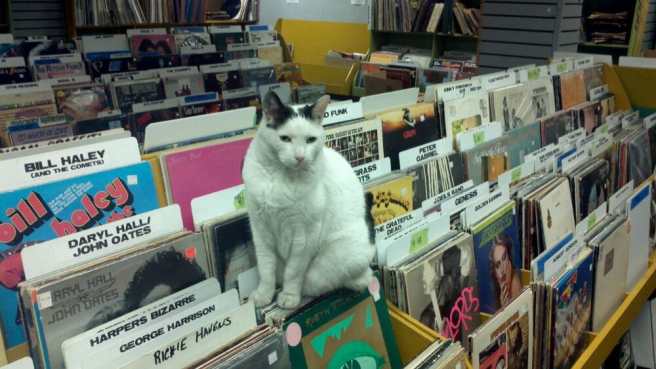 I don’t remember the cat at now-defunct Records, only the smell of mildew.